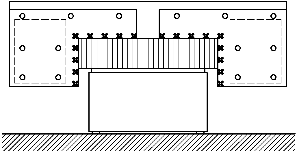 1 - зажимная поверхность; 2 - завесы, расположенные в одном