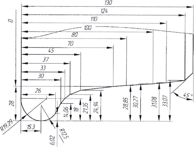 <*> Размеры следует контролировать до снятия фасок К и Л.