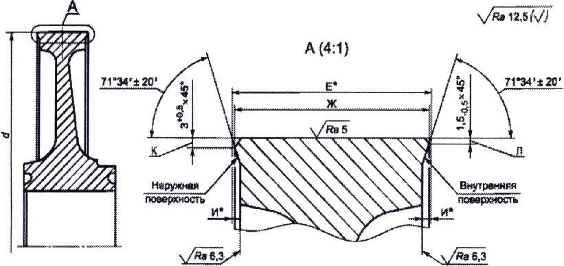 - унифицированное исполнение для обеспечения повышенной прочности обода колеса | 101 h12(-0,35) | | 4,5+0,5 |
