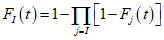 5. С учетом изложенного условная функция распределения наработки изделия до отказа при условии, что в нем заложен в процессе изготовления конкретный набор I ИПД, представляет собой распределение минимума случайных величин