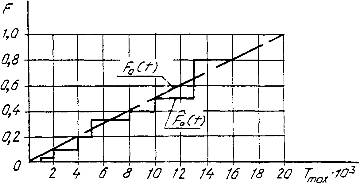 9. Если аппроксимация представляется равномерным распределением на интервале (0, Tmax): F0(t) = t/Tmax то получается экспоненциальное распределение наработки до отказа