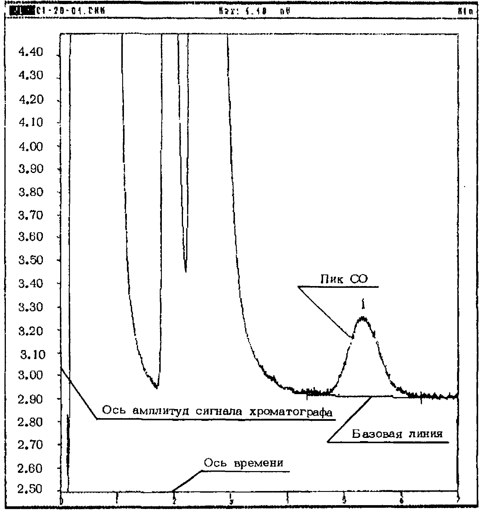 Ю.1.2 Метод основан на хроматографическом разделении окиси углерода и сопутствующих компонентов на колонне с молекулярными ситами, конверсии окиси углерода в метан в присутствии нихромового катализатора и водорода и детектирования метана ДИП без предварительного концентрирования.