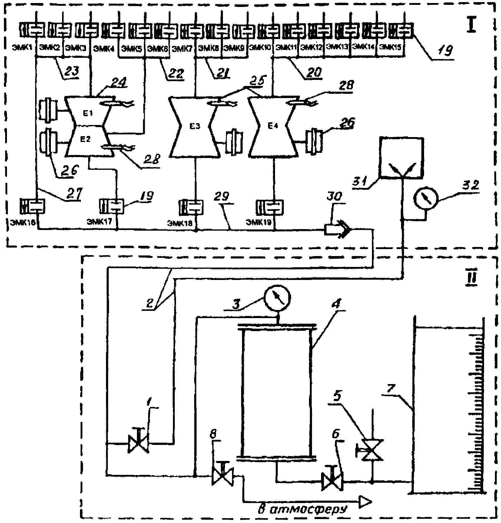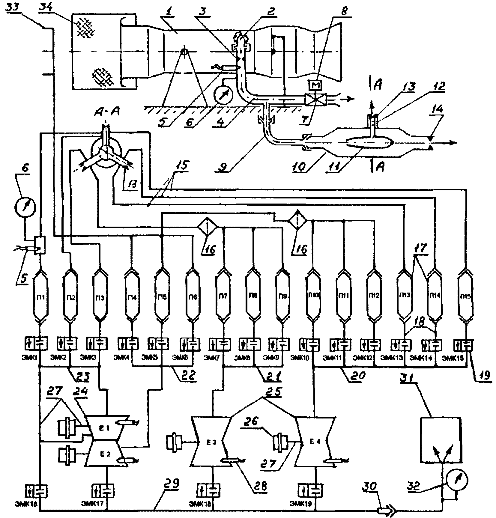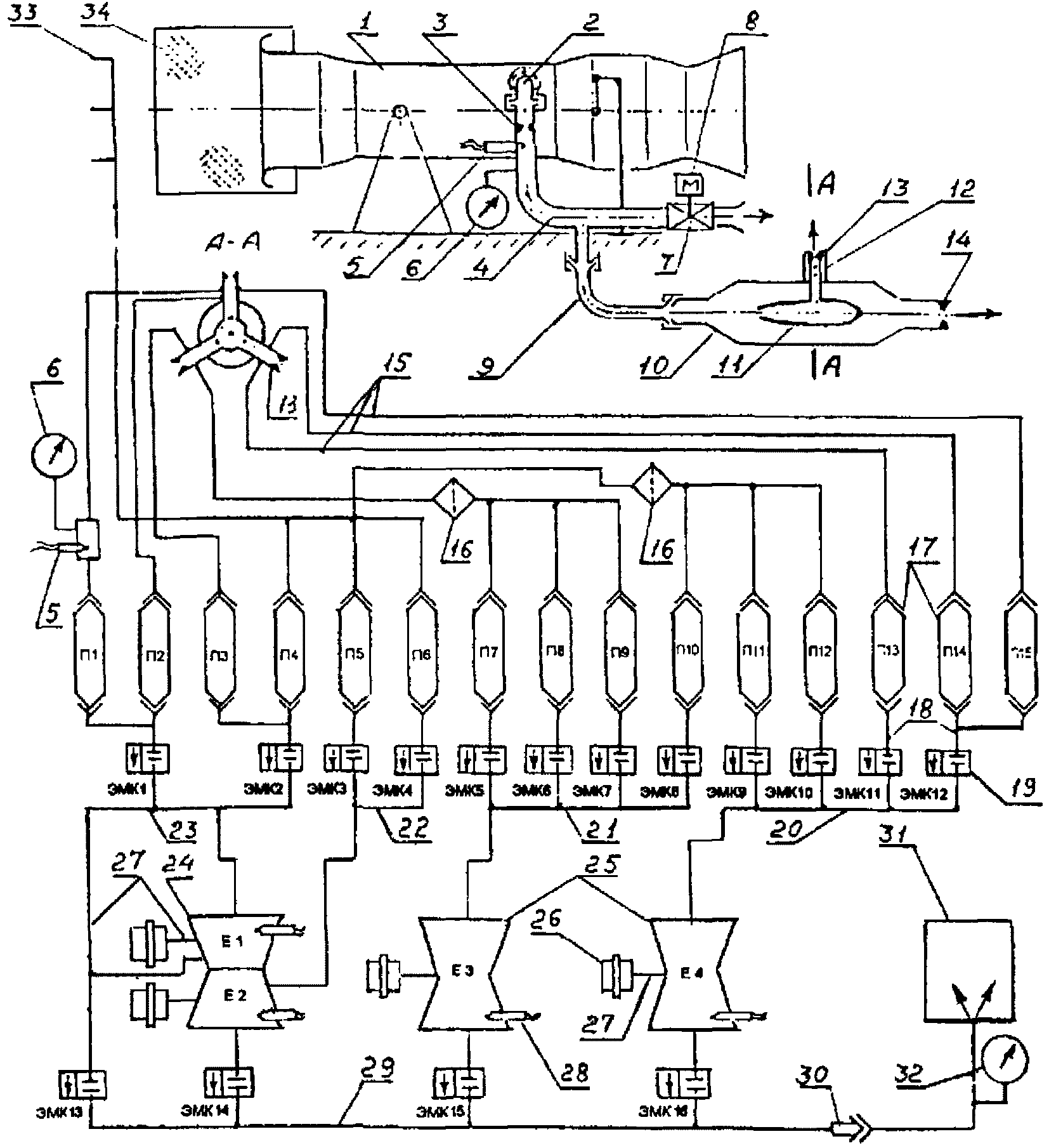 2 за соответствующей ступенью компрессора, формирует поток воздуха и обеспечивает его расход через три головки со штуцером