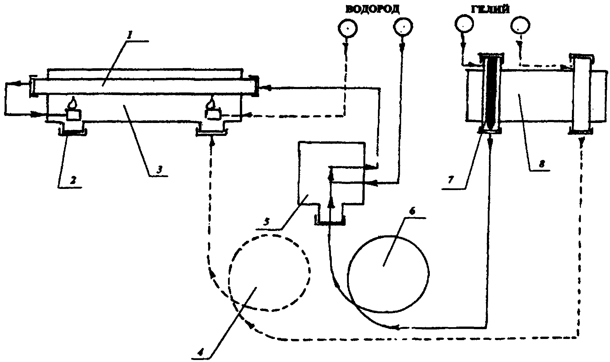 рисунку Ю.1. Для этого к выходу колонны 6 подсоединяют смеситель 5 из нержавеющей стали, к которому подводят водород, и соединяют смеситель с одним из концов метанатора 1. Второй конец метанатора соединяют с детектором 3. Свободный конец штуцера детектора закрывают заглушкой 2. На