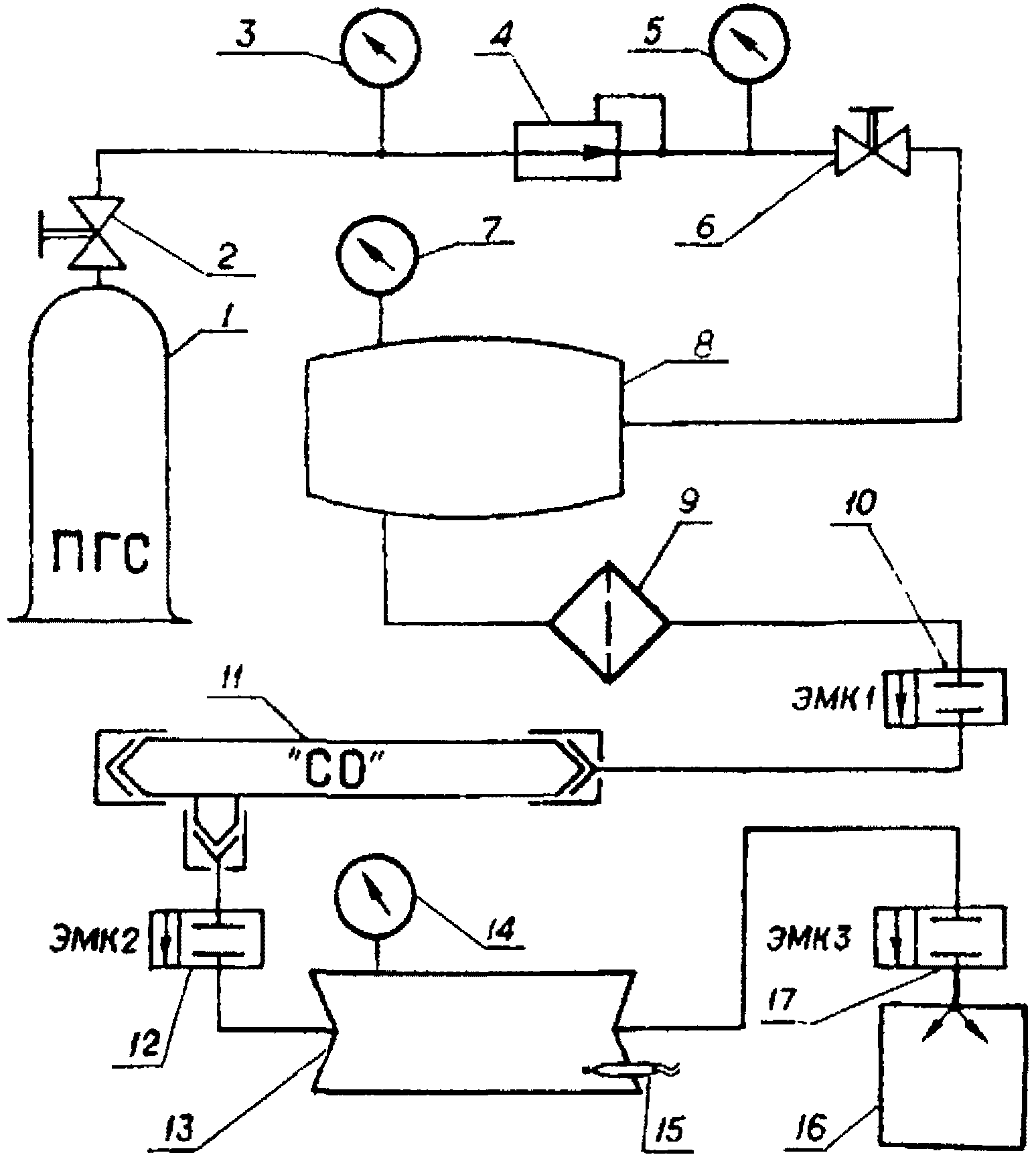 - стандартная аттестованная смесь окиси углерода (поверочная газовая смесь) с воздухом или азотом с концентрациями от 10 до 80 мг/м3;