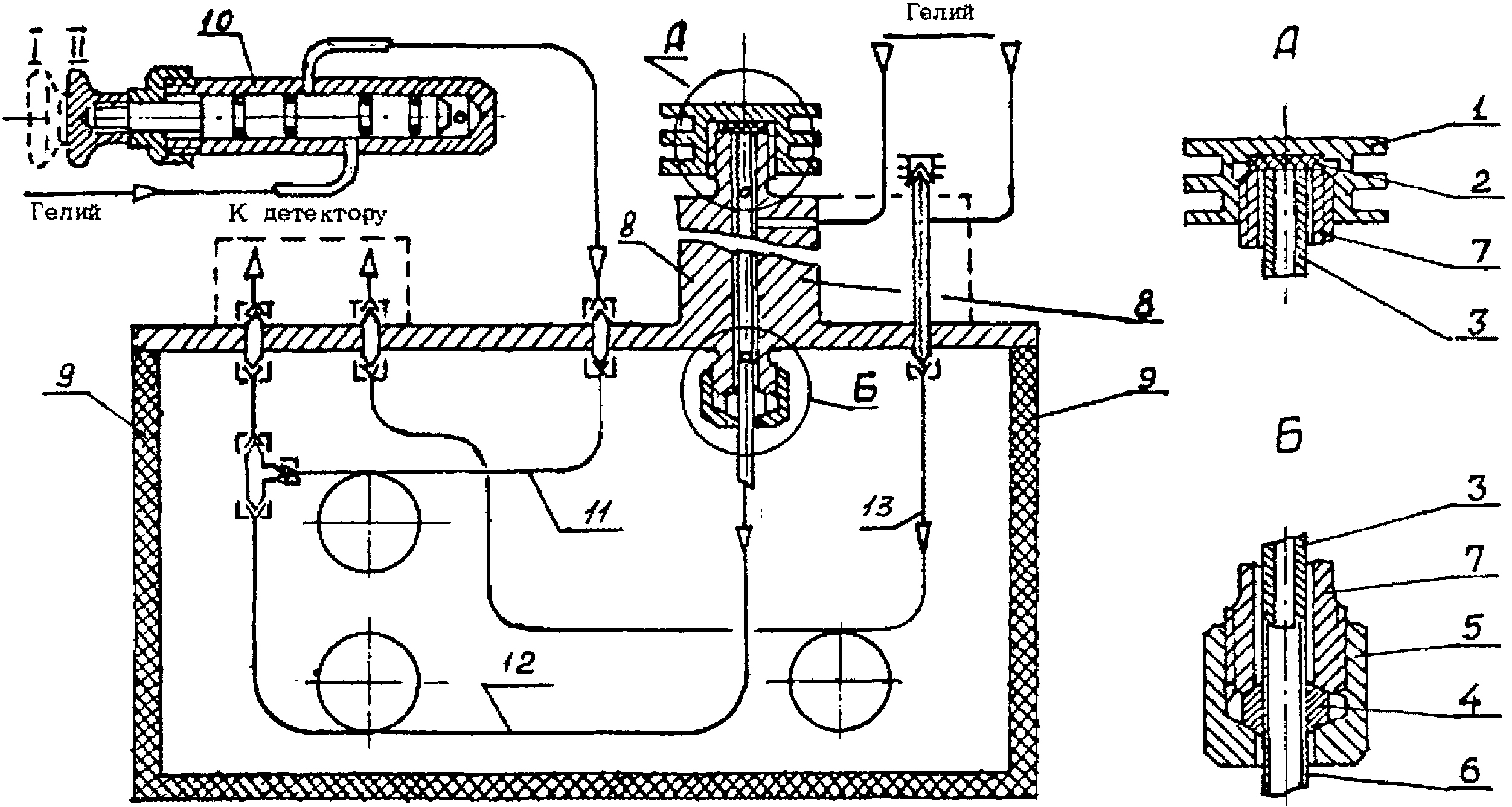12 в момент отбора проб. Для исключения образования застойных зон головки постоянно продуваются через жиклеры продувки