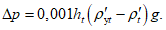 Разность высот столбов уравновешивающей жидкости U-образного дифманометра или отсчет по шкале чашечного дифманометра при температуре прибора | ht | мм |