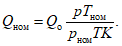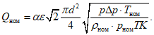 для объемного расхода, приведенного к нормальному состоянию | Qном п | м3/с |