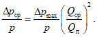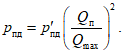 Потеря давления в сужающем устройстве при расходе, равном Qп | pпд | Па |