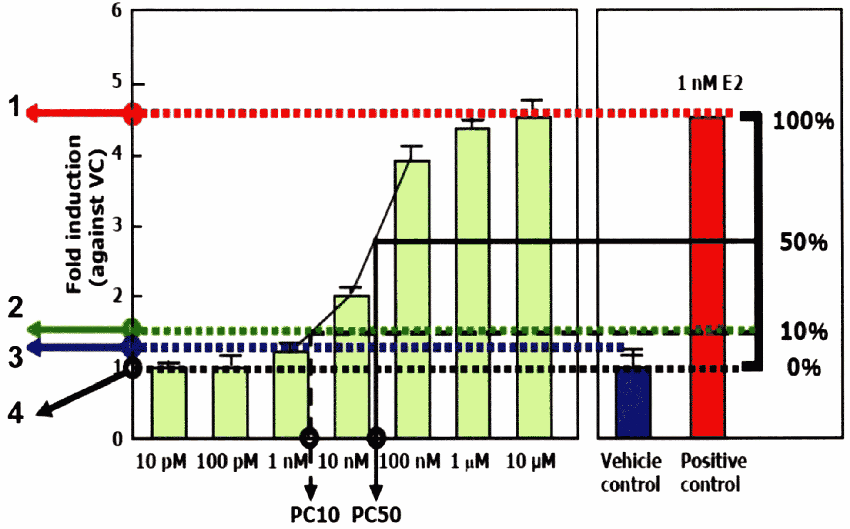4.2.4. Следует использовать по крайней мере 4 информативных концентрации. При наличии цитотоксичности концентрации должны быть в диапазоне от максимальной до минимальной по токсичности или до отсутствия токсичности. Обычно диапазон между концентрациями должен быть в пределах от 2 раз до