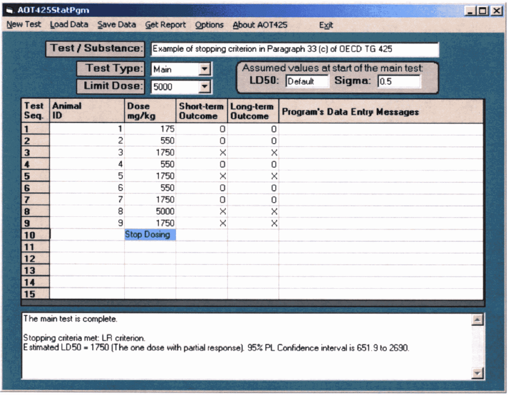 4.3.5. Если проведен ряд исследований и отсутствуют подходящие данные, то эксперимент должен быть проведен в той же лаборатории, используя те же виды, линии, пол, режим обработки, которые были в основном исследовании. Если выявлена токсичность, то для первого срока забоя тестируют 3 дозы. Диапазон доз должен быть в пределах от максимальной до минимальной токсичности или отсутствия токсичности. При более поздних сроках забоя необходимо использовать лишь максимальную дозу. Наибольшая доза определяется как доза, вызывающая такие признаки токсичности, которые при повышении уровня доз при том же режиме затравки указывают на возможность летального эффекта. Вещества со специфической биологической активностью в низких нетоксичных дозах (такие как гормоны и митогены) могут быть исключением для критериев установления дозы, и дозы должны устанавливаться для каждого конкретного случая. Наибольшая доза может также быть определена как доза, вызывающая ряд признаков токсичности в костном мозге (т.е. снижение митотического индекса более чем на 50%).