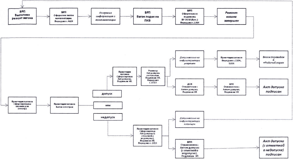 допуск грузовых вагонов на инфраструктуру ОАО "РЖД" после плановых видов ремонта - оценка соответствия грузового вагона действующим ремонтным и конструкторским документам по установленным критериям с предоставлением права выхода грузового вагона после плановых видов ремонт на инфраструктуру ОАО "РЖД"; (В ред. Распоряжения ОАО "РЖД" от 25.09.2018 N 2094р)