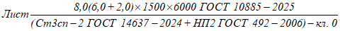 ГОСТ 5632-2014, общей шириной 1500 мм, общей длиной 6000 мм, класса сплошности соединения слоев 1: