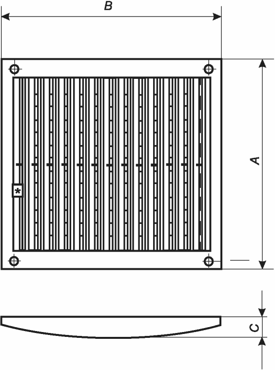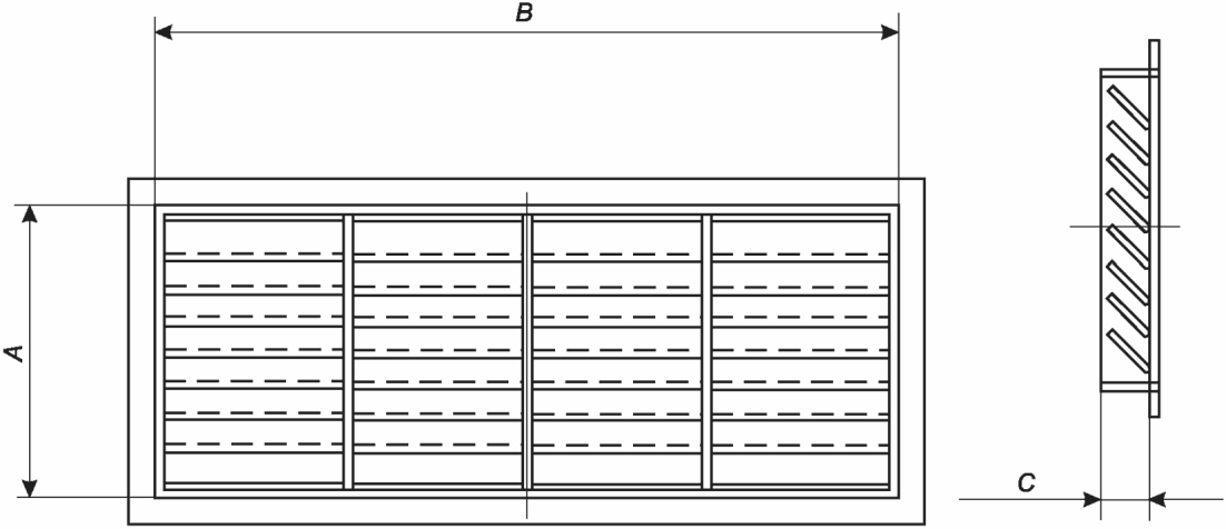 A - высота решетки; B - ширина решетки; C - толщина решетки