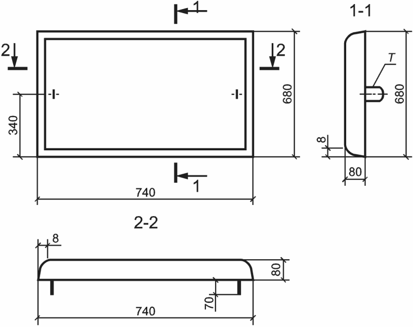 То же, плиты типа 3П шириной 680 мм, длиной 740 мм, толщиной 80 мм, предназначенной для укладки на обочине, и на кривых участках пути - в междупутье: