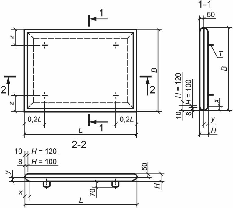 Марка плиты | Размеры плиты, мм | Привязочный размер петли z, мм | Нормативная нагрузка от автотранспорта |