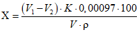 Массовую долю нелетучего остатка в метаноле X, %, вычисляют по формуле: