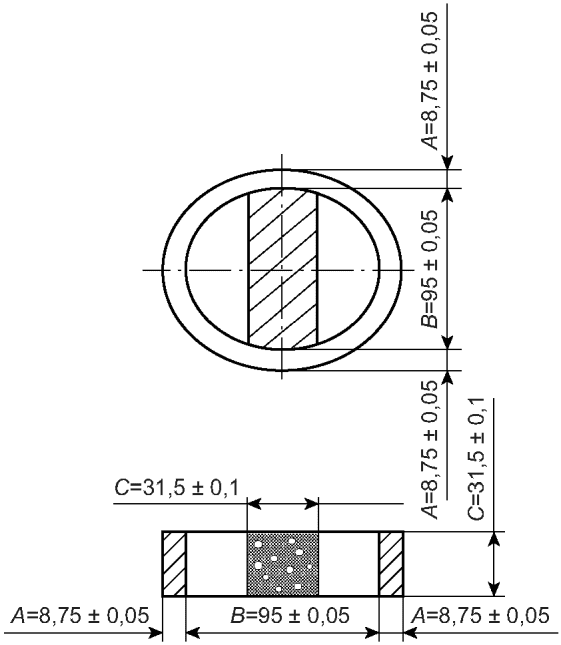 C - высота кольца, высота и толщина образца