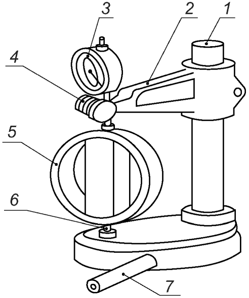 1 - стойка; 2 - держатель; 3 - индикатор часового типа;