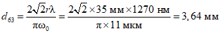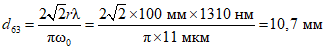 - диаметр модового поля (ДМП) (по уровню интенсивности 1/e
