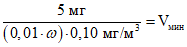 3.4 Используя минимально требуемое значение массы кокса на фильтре, рассчитаем минимально необходимый объем пробы атмосферного воздуха, Vмин, м3: