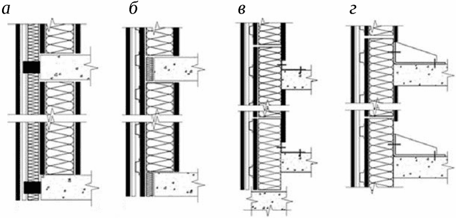 а - пример выполнения узла наружной стены (тип 1);