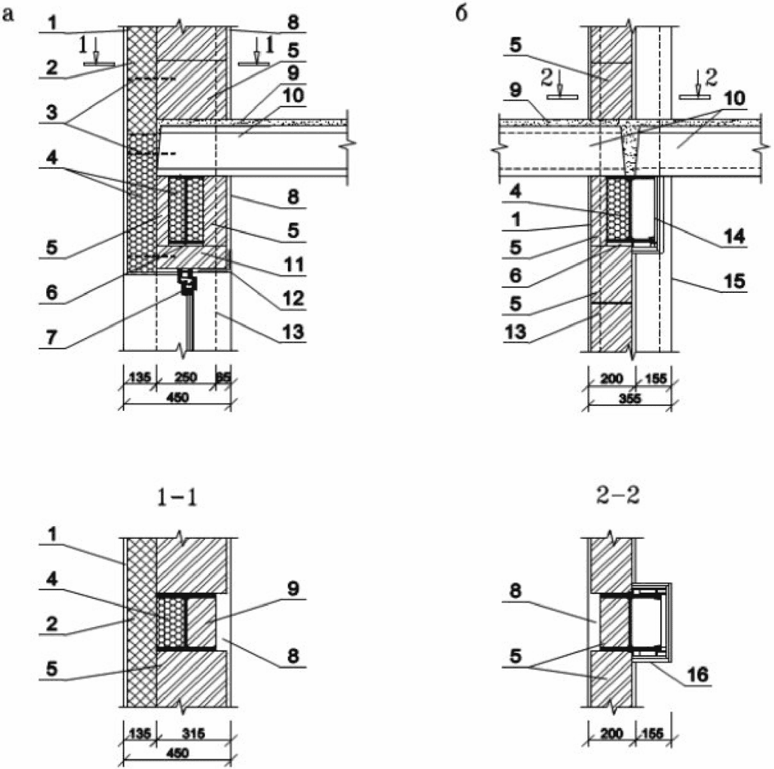 б - пример выполнения узла наружной стены (тип 2);
