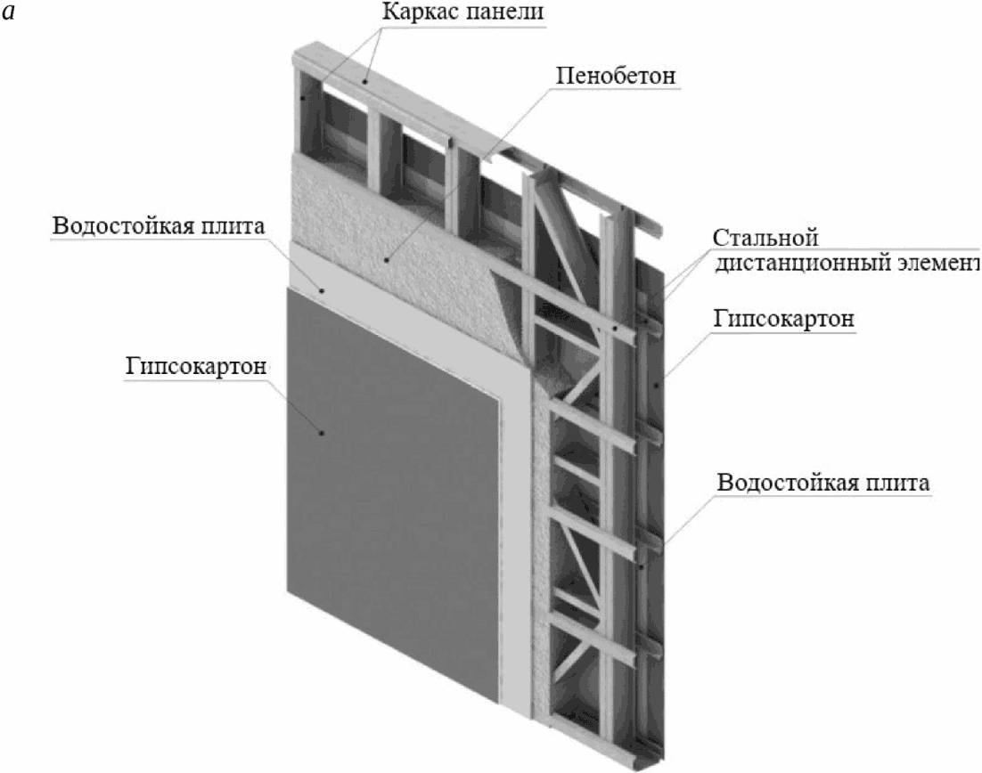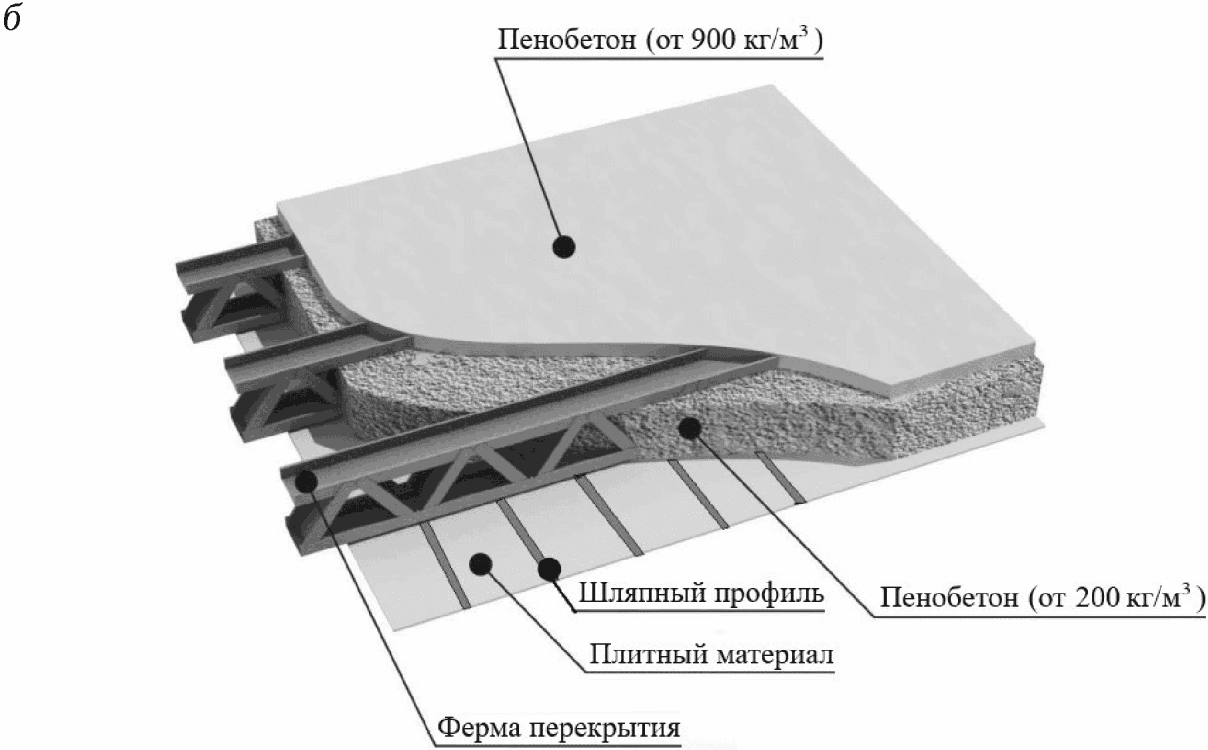 3. Для этого в конструкциях стен, перекрытий и покрытий зданий несущие холодногнутые оцинкованные профили должны быть окружены пенобетоном, а со стороны, подвергающейся огневому воздействию, также защищены слоем пенобетона толщиной не менее 20 мм и плитным материалом несъемной опалубки. Примеры конструктивных решений каркасных стен и перекрытий, защищенных пенобетоном, приведены на