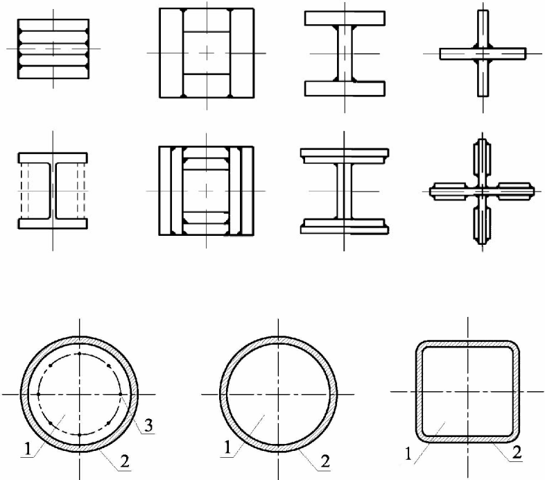 Б.3.2 В качестве связей используют симметричные сечения в виде труб, прокатных двутавров, двойных уголков и швеллеров