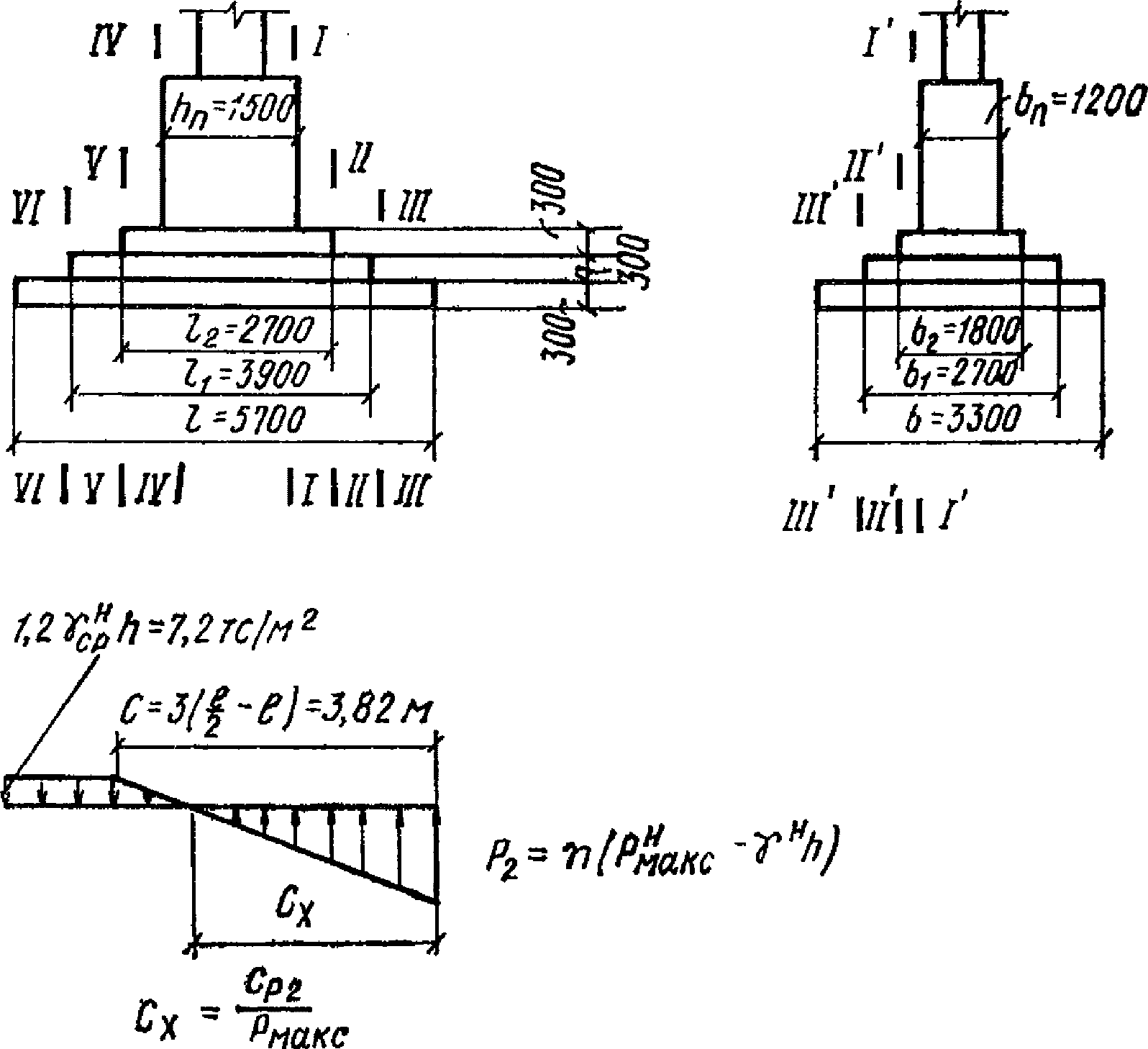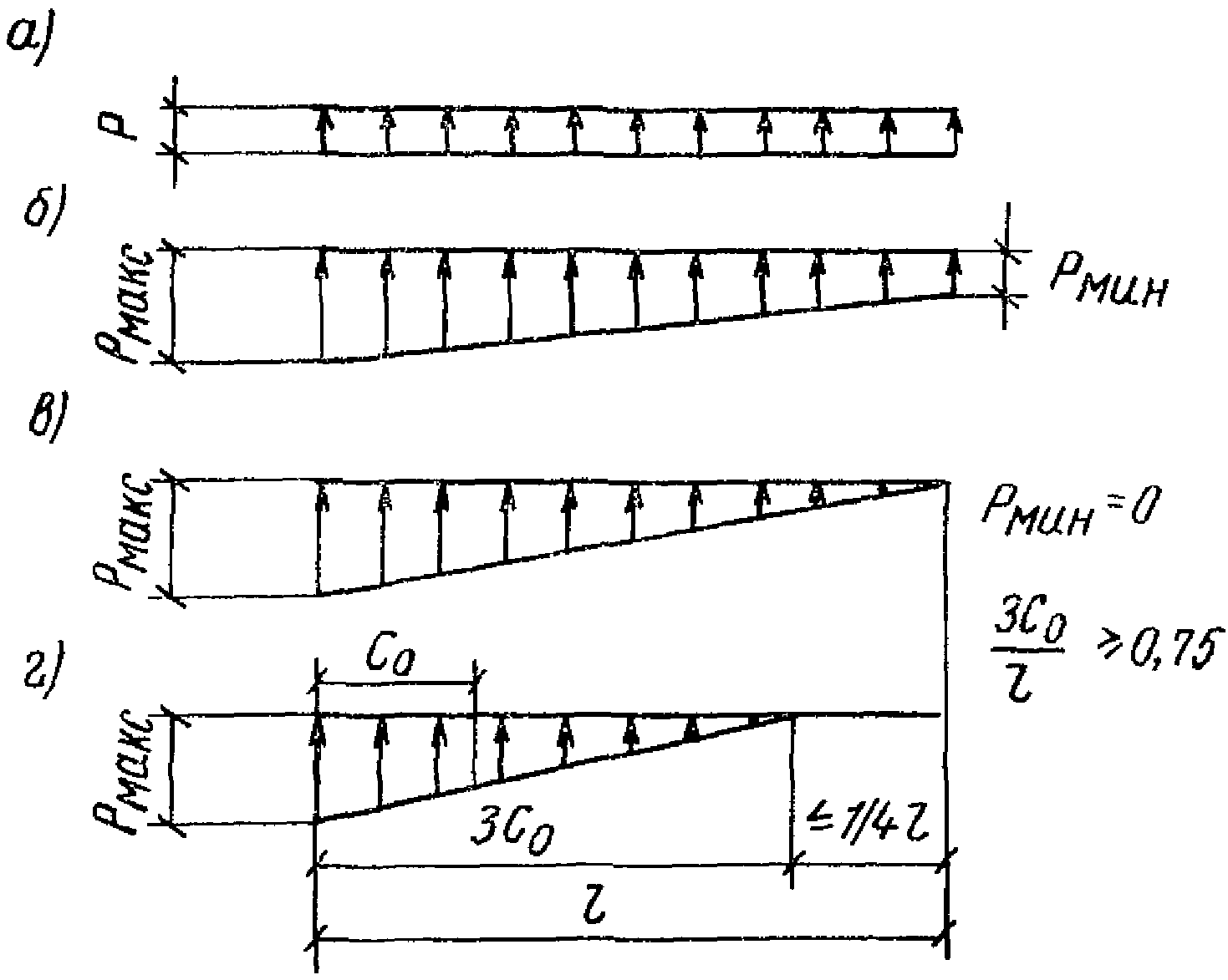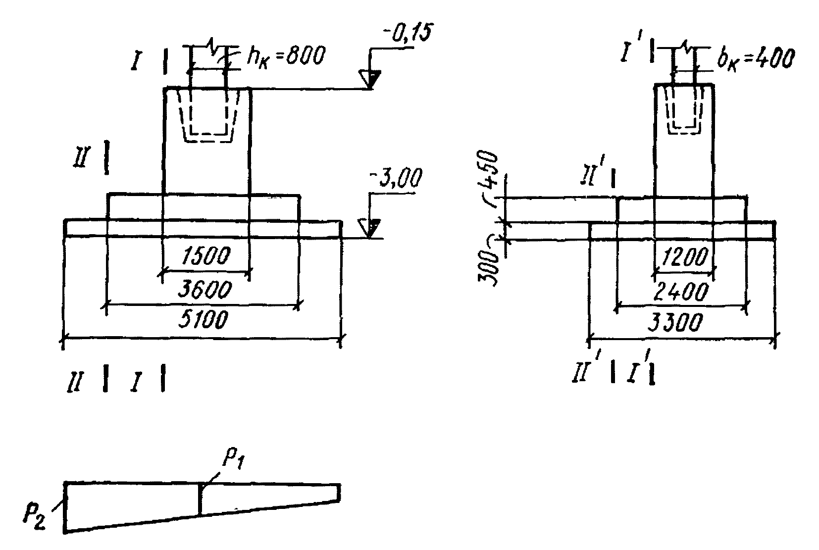 3.1. Размеры подошвы фундаментов определяются из расчета оснований. При этом должна быть соблюдена одна из эпюр давления на грунт, приведенных на