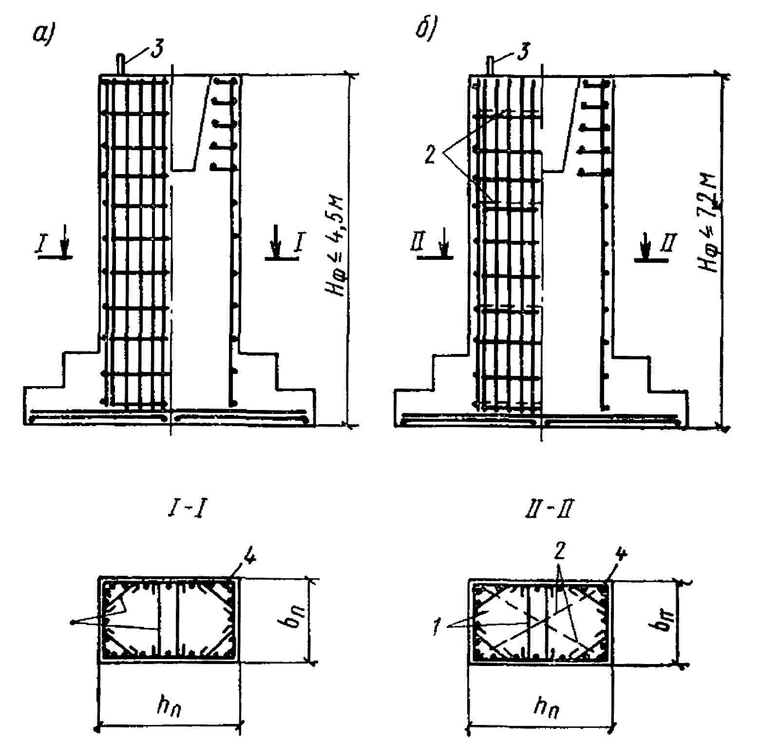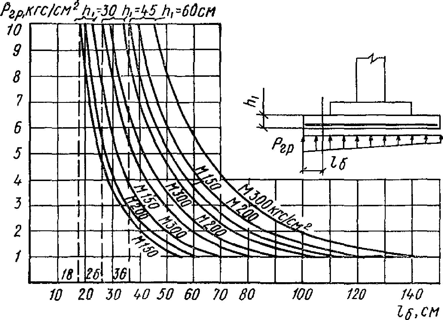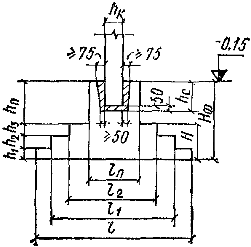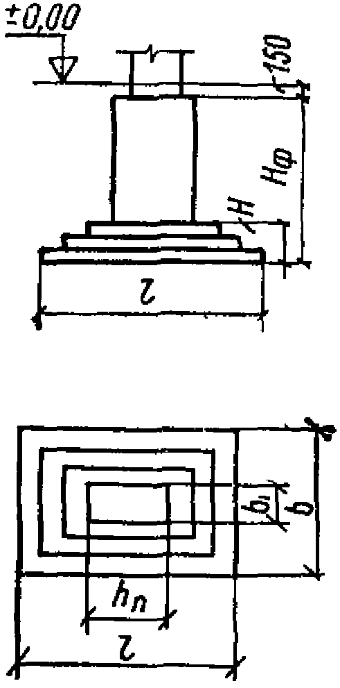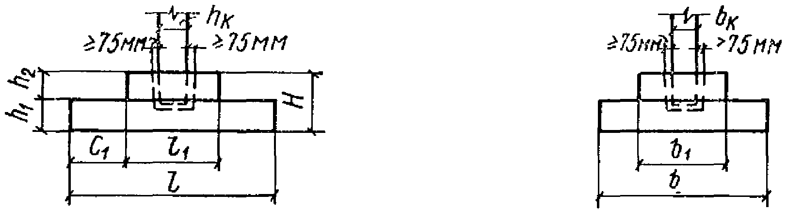 фундамента (высотой h1 = 30, 45, 60 см из бетона марок М150,