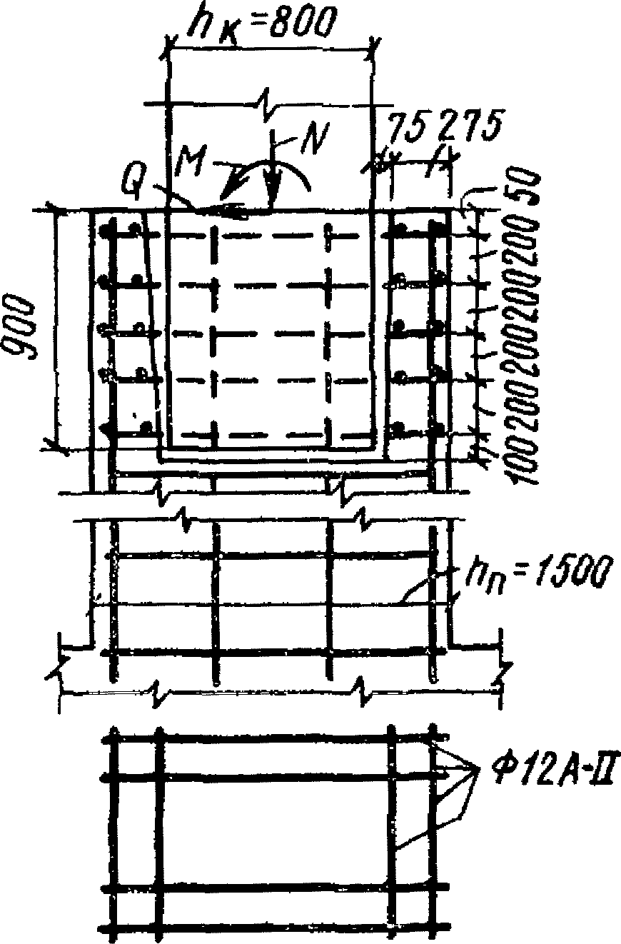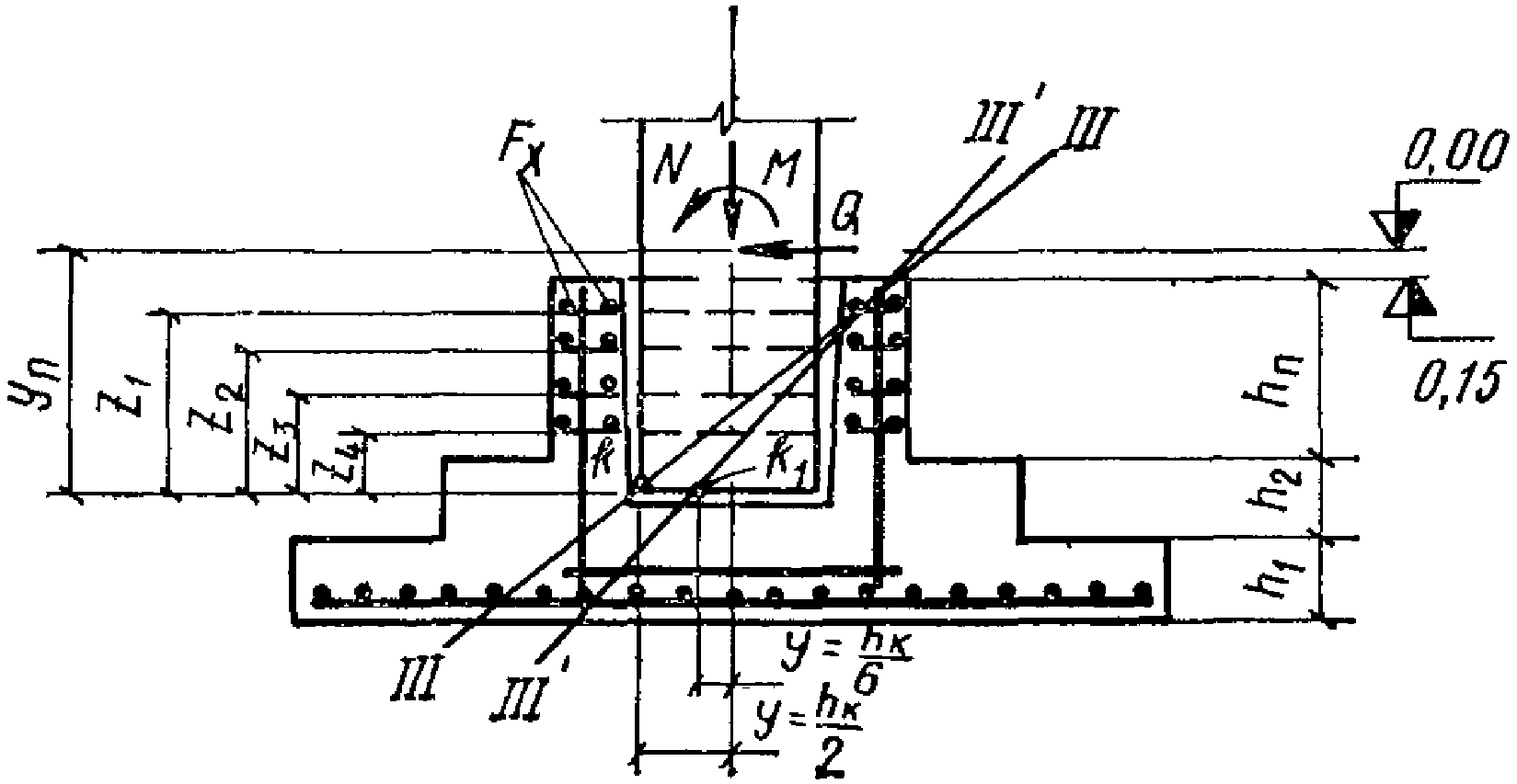 Q - поперечная сила на уровне верха фундамента от расчетных нагрузок, передающаяся на фундамент от колонны;