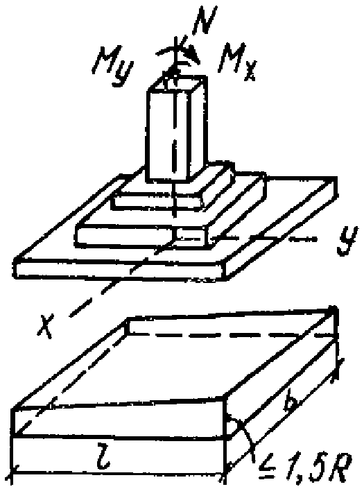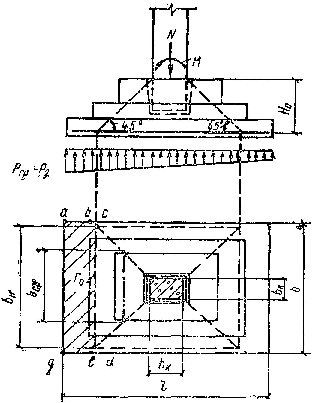 M - изгибающий момент на уровне подошвы фундамента от расчетных нагрузок, передающихся на фундамент от колонны;