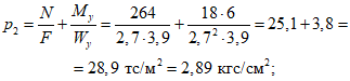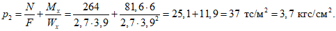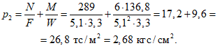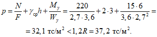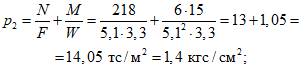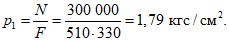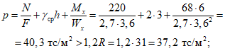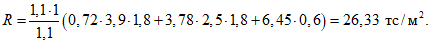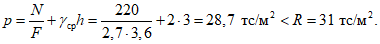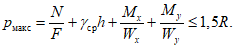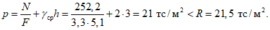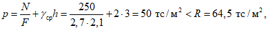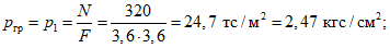 p - среднее фактическое давление на грунт под подошвой фундамента от расчетных нагрузок, кгс/см2, не превышающее расчетного давления R.