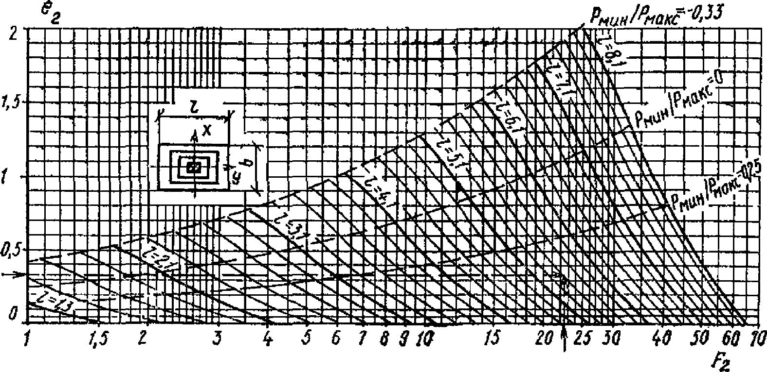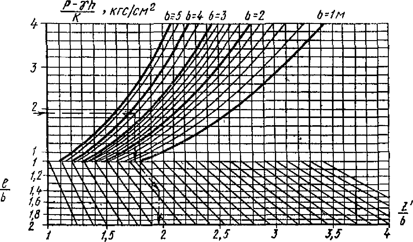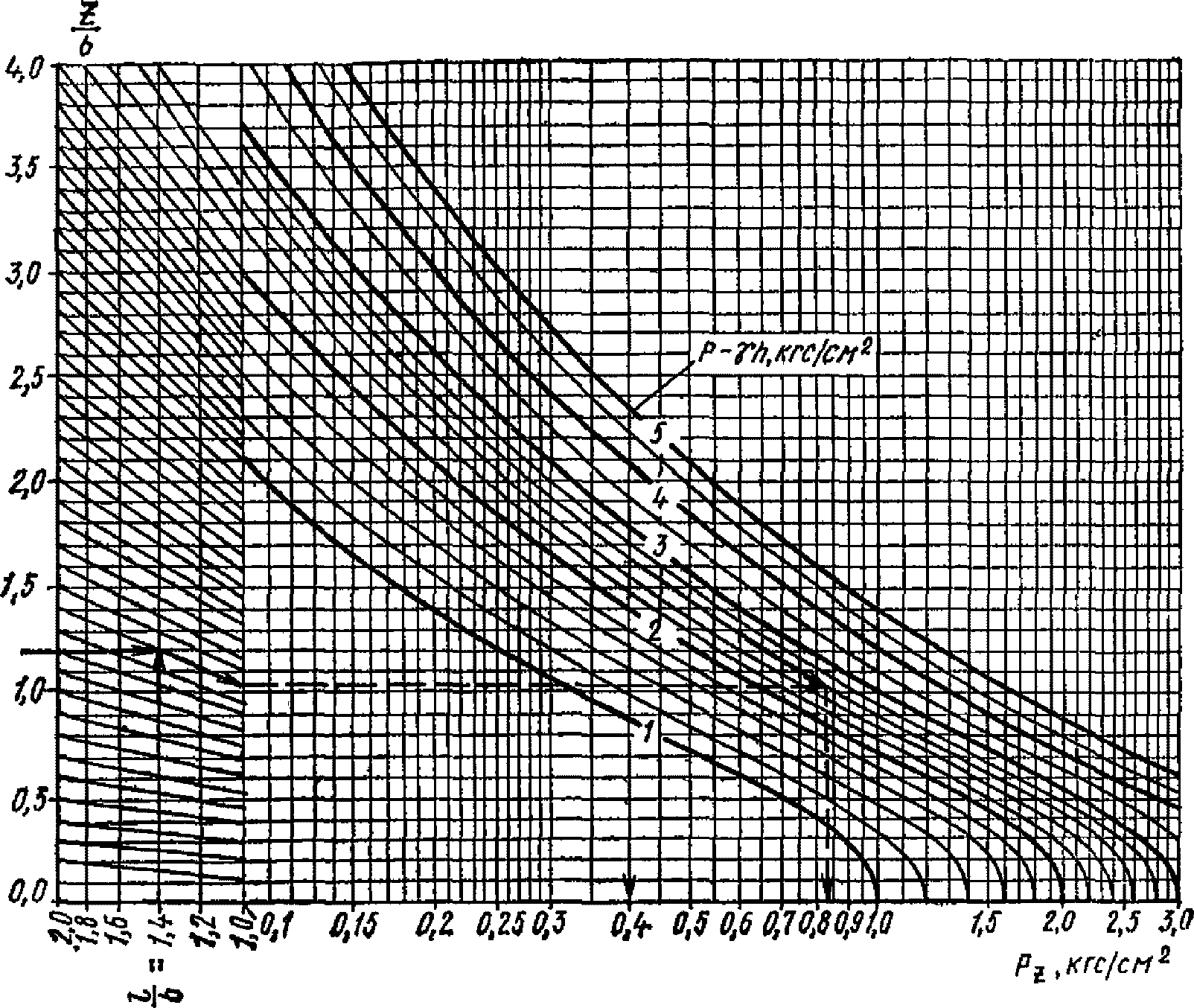 на графике стрелками. В частности, для z/b = 1,2, l/b = 1,4;