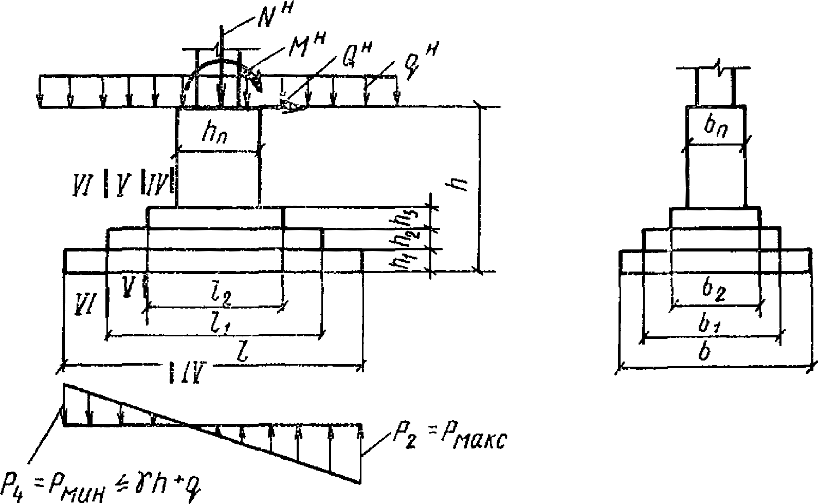 Mн - изгибающий момент на уровне подошвы фундамента от нормативных нагрузок;
