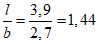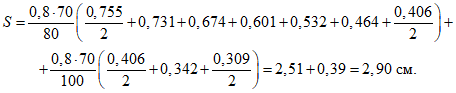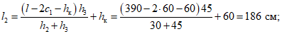 и l/b = 1,4 находим z'/b = 1,96; z' = 1,96; b = 6,9