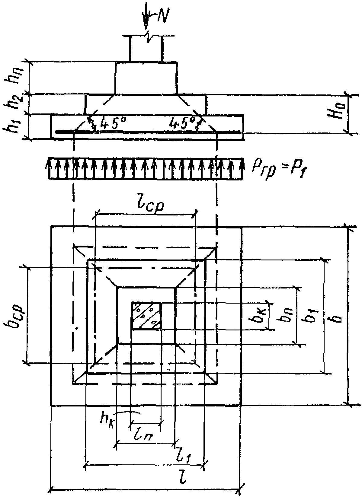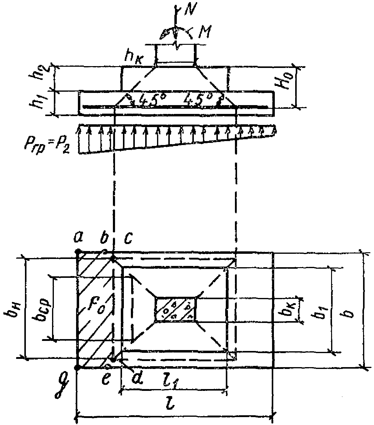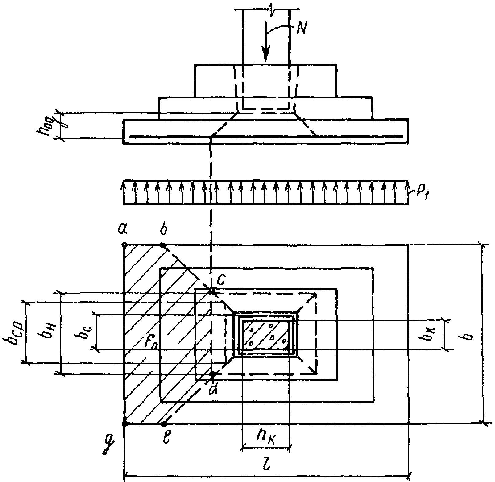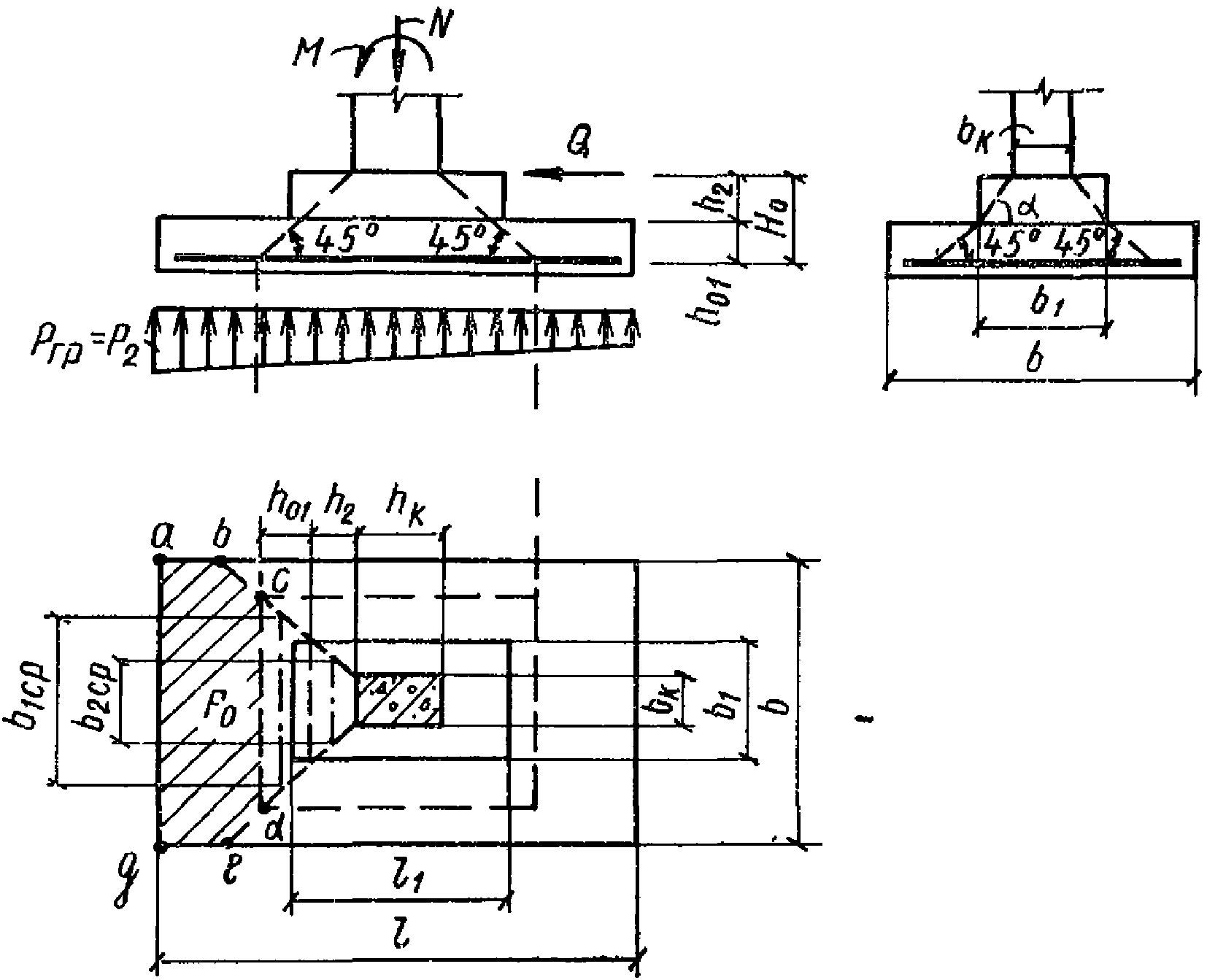 F3 = b(l - 0,5b + bк - hк), м2; Rр - расчетное сопротивление