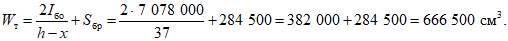 W - момент сопротивления подошвы фундамента в направлении действующего изгибающего момента;