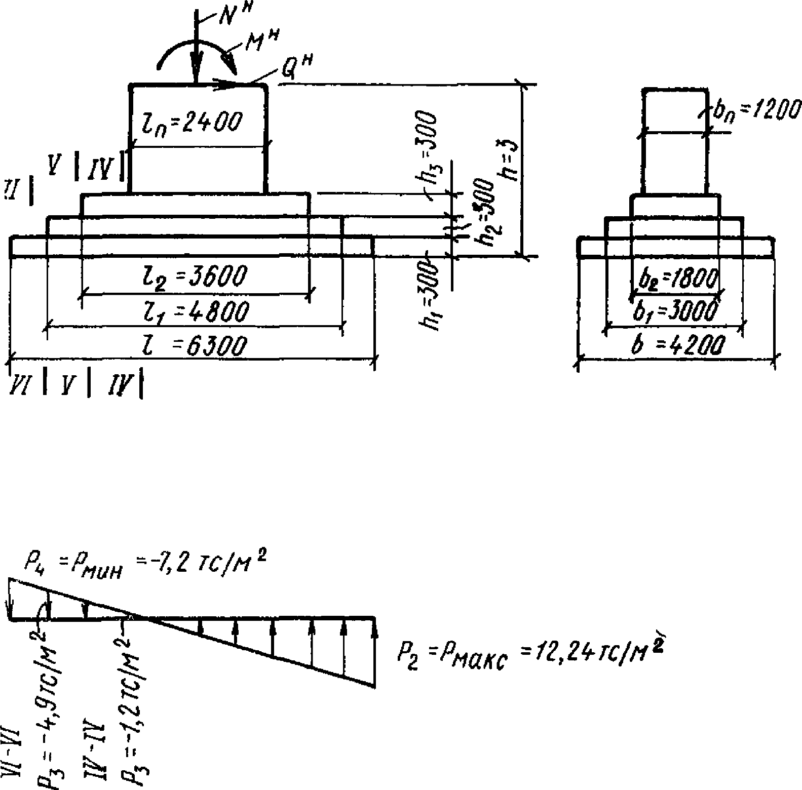 N - нормальная сила на уровне подошвы фундамента от расчетных нагрузок без учета веса фундамента и грунта на его уступах;