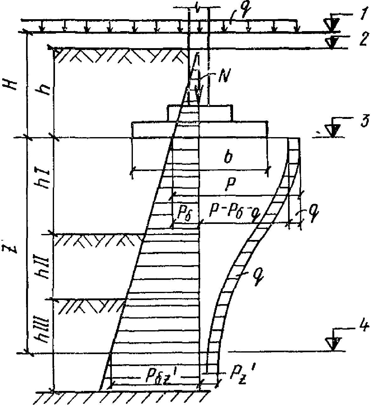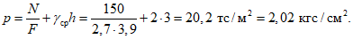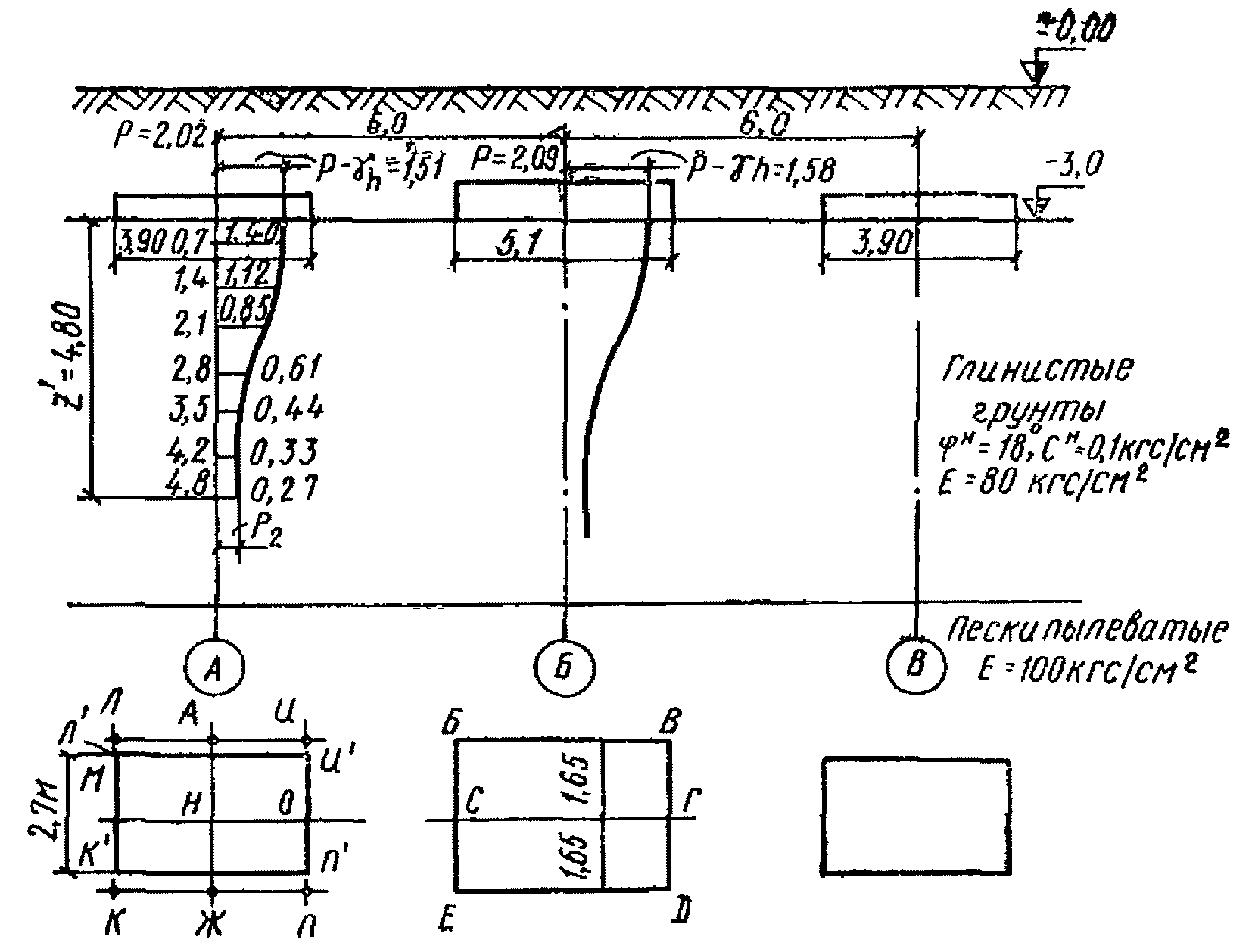 где p - среднее давление на грунт под подошвой вышерасположенного фундамента от расчетной нагрузки, принимаемой с учетом коэффициентов перегрузки, соответствующих расчету оснований по несущей способности;
