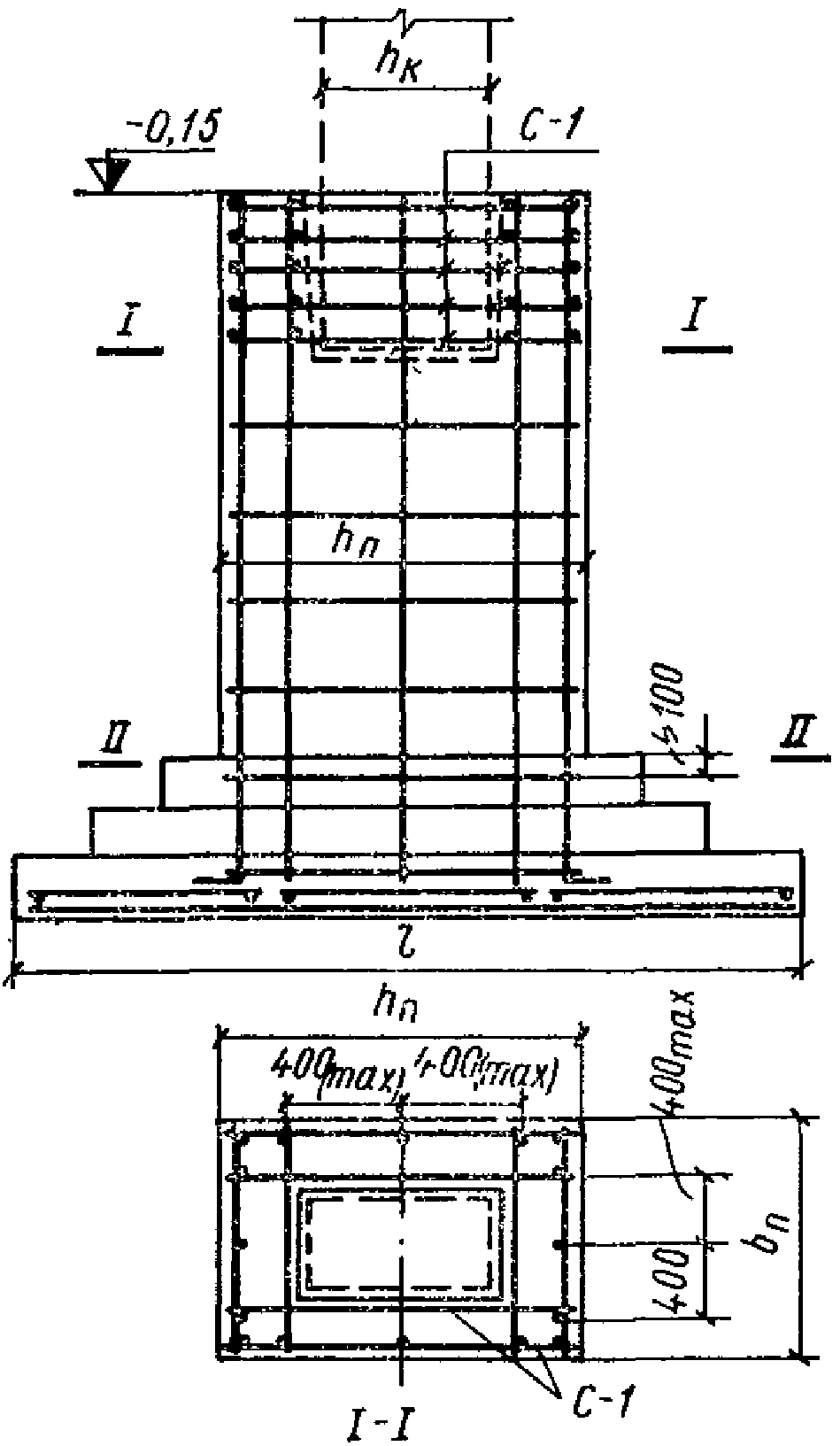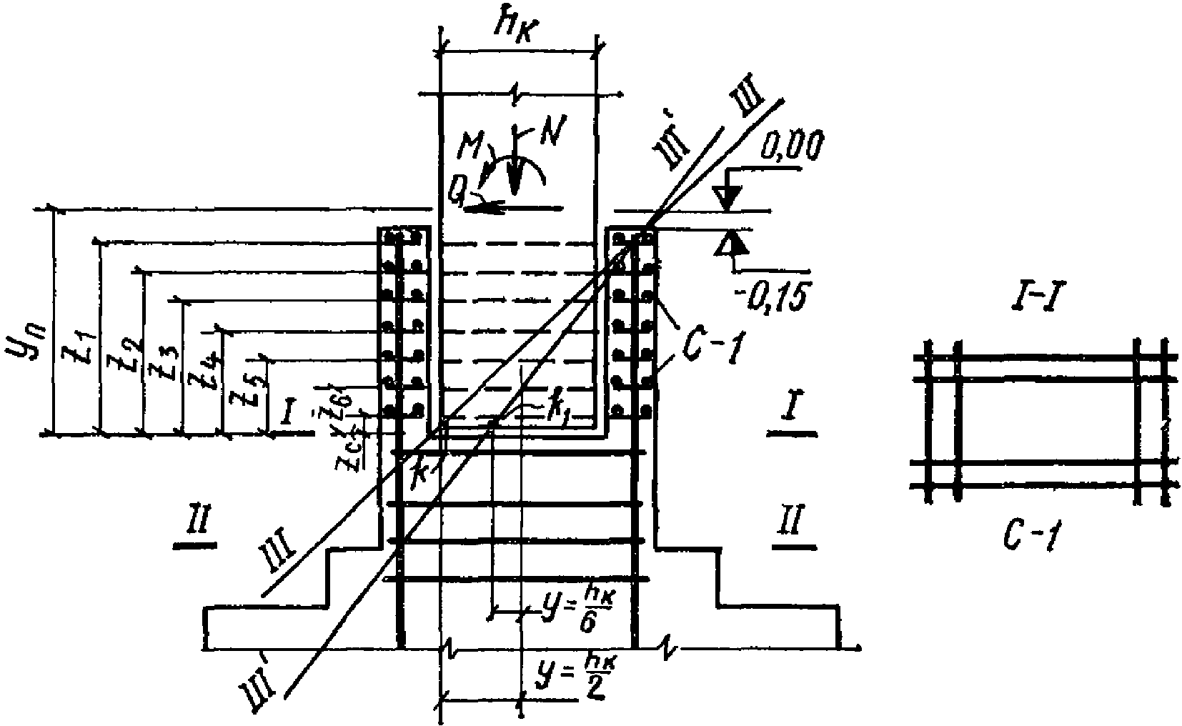 hк - больший размер сечения прямоугольной колонны у обреза фундамента;
