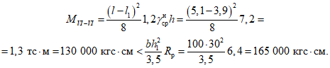 Rр - расчетное сопротивление бетона растяжению, принимаемое как для железобетонных конструкций, кгс/см2;