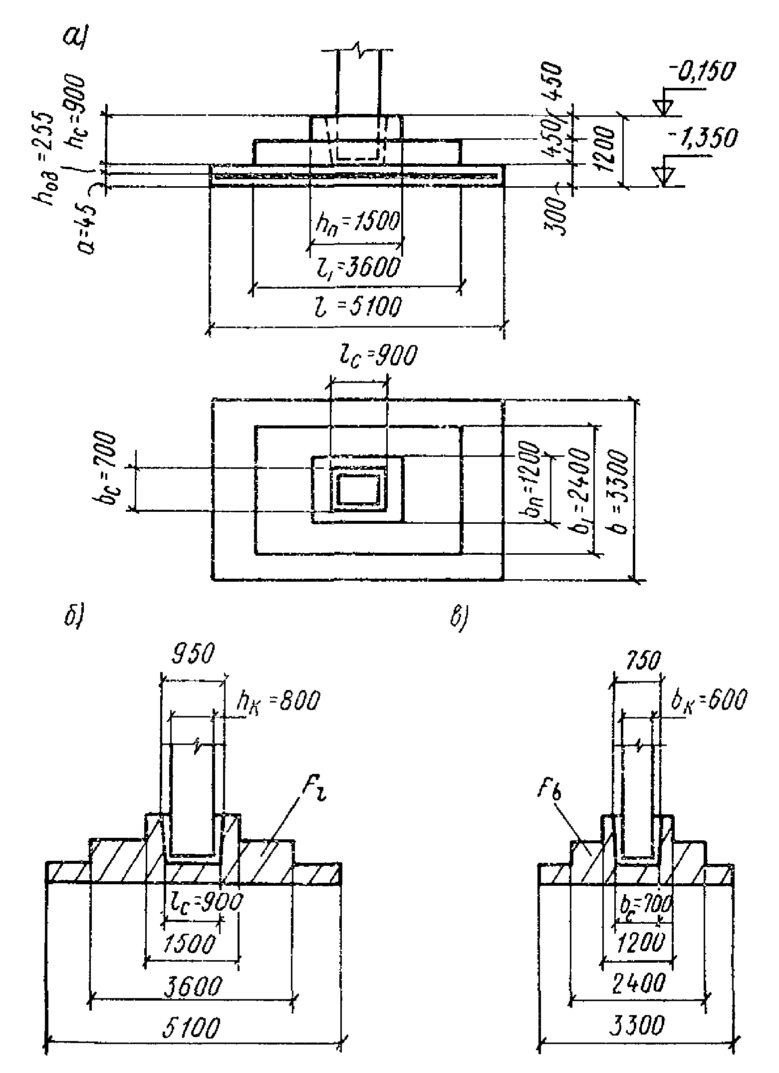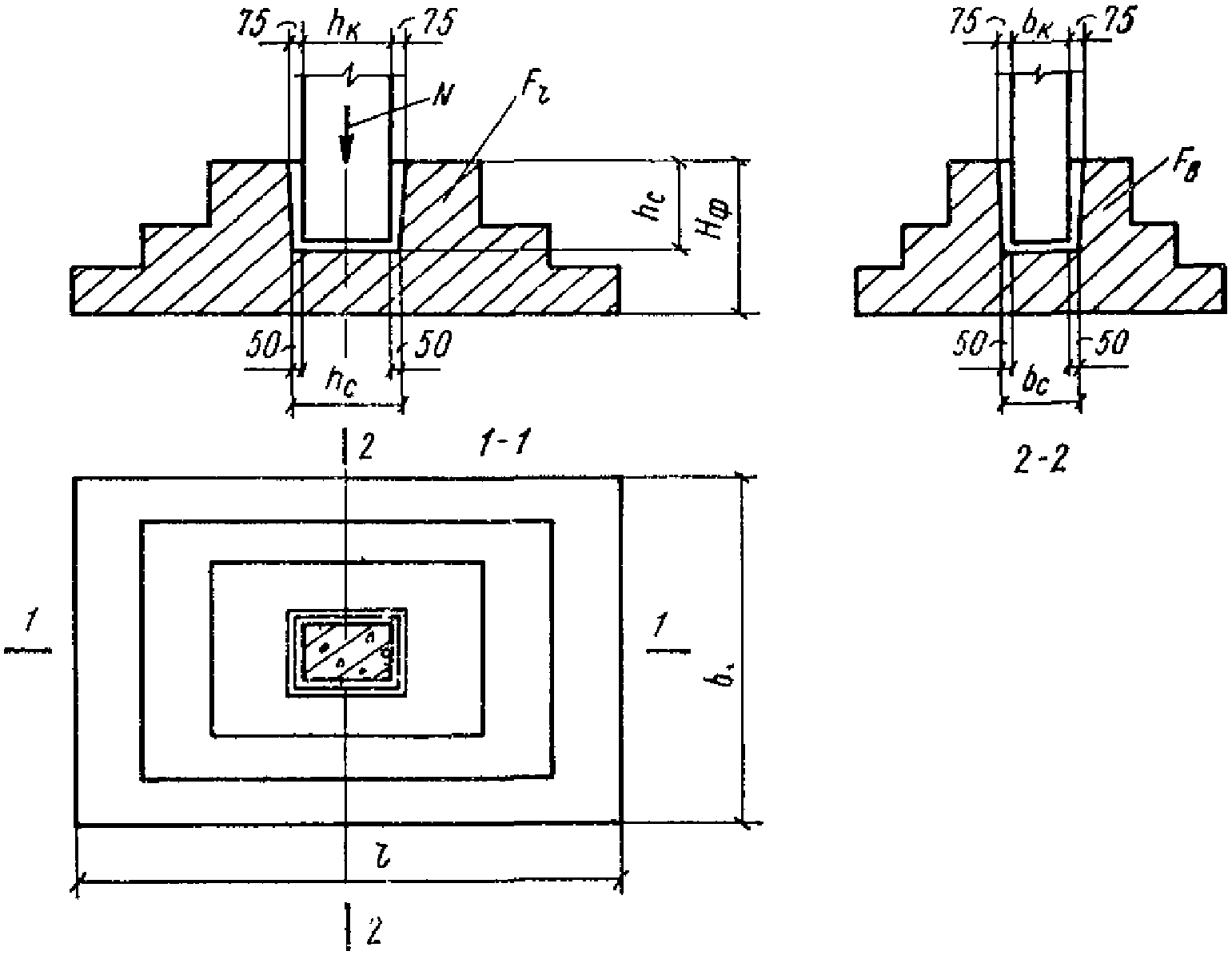 2.7. Расчет фундаментов по прочности (определение высоты плитной части фундамента, расчет стаканного фундамента на продавливание, определение размеров ступеней, арматуры фундамента) производится на основное или особое сочетание нагрузок в соответствии с требованиями главы