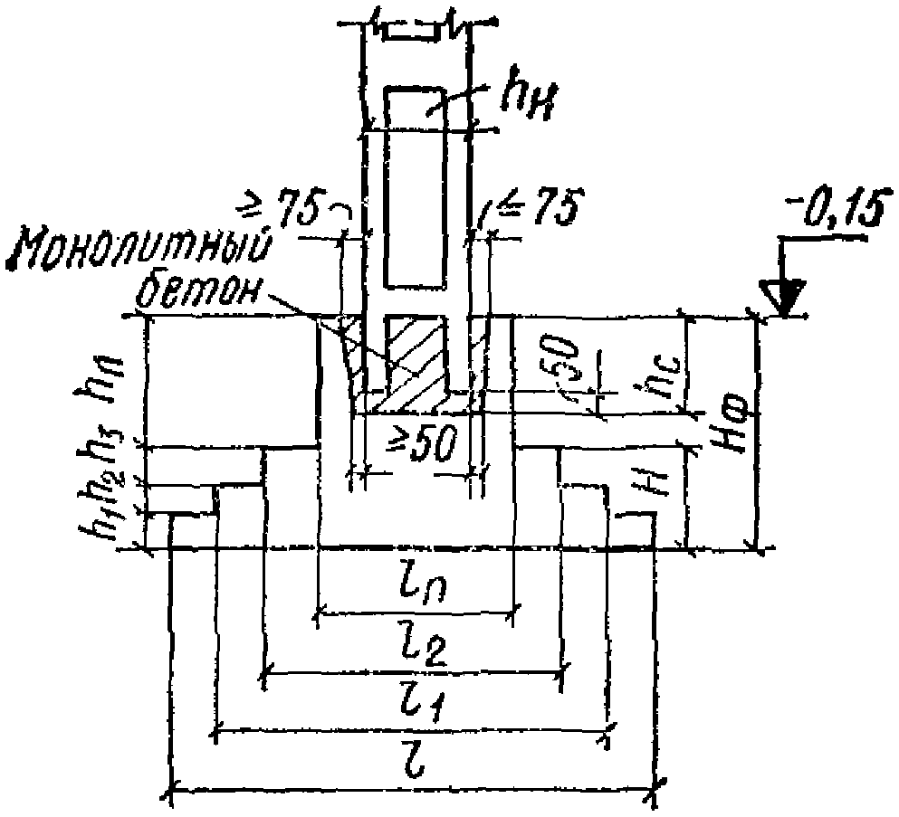 bк - меньший размер сечения прямоугольной колонны у обреза фундамента;
