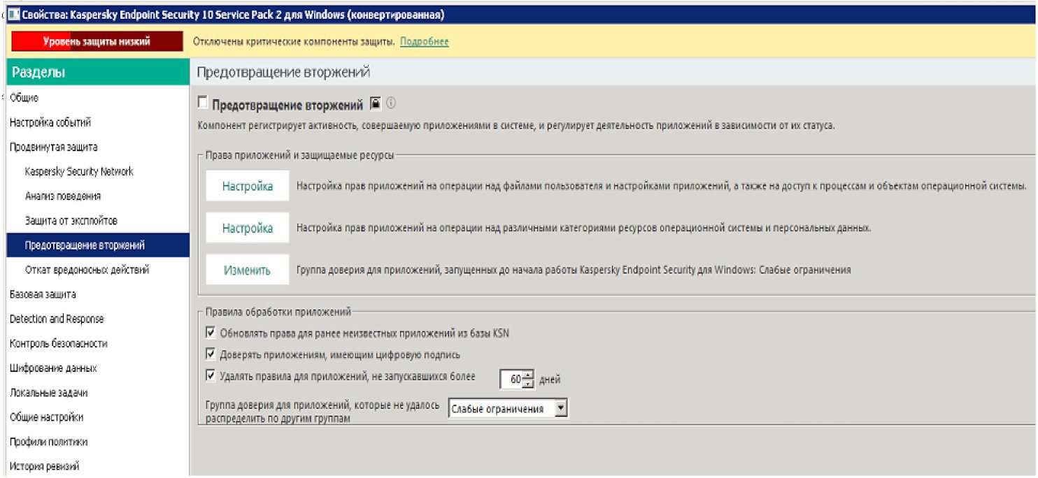 Рисунок В.5 - Установка параметров в разделе "Предотвращение