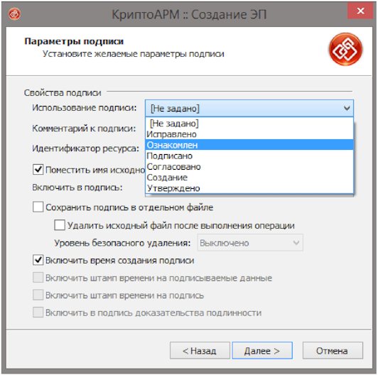 Рисунок Г.5 - Окно "Параметры электронной подписи"