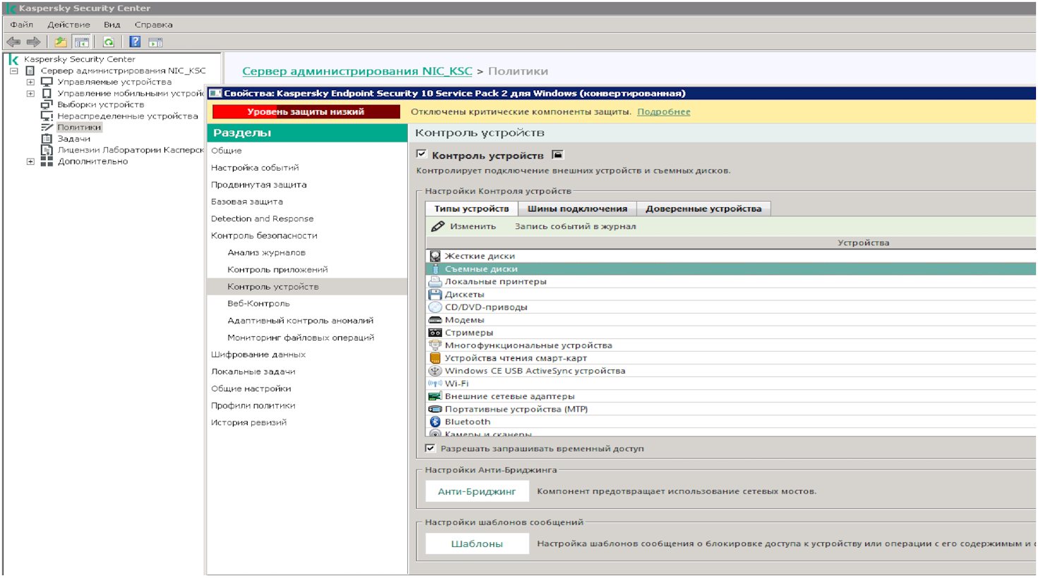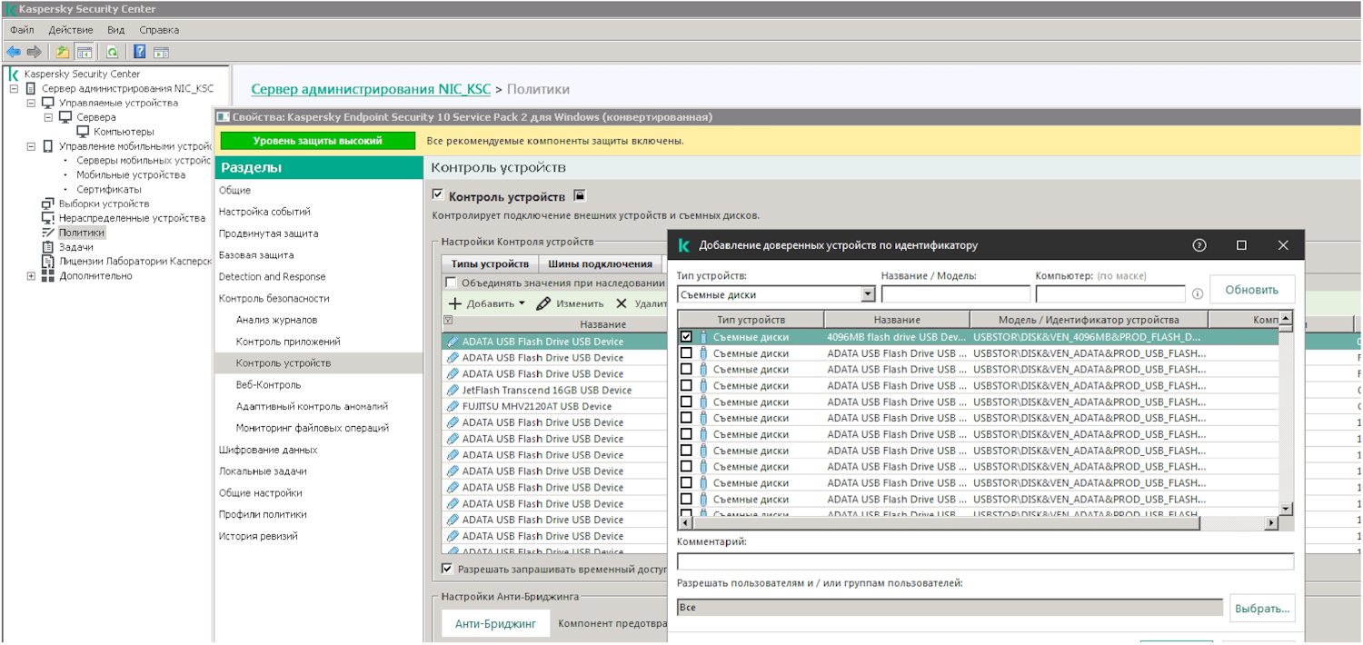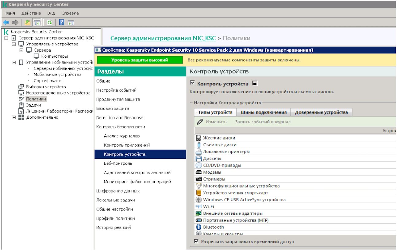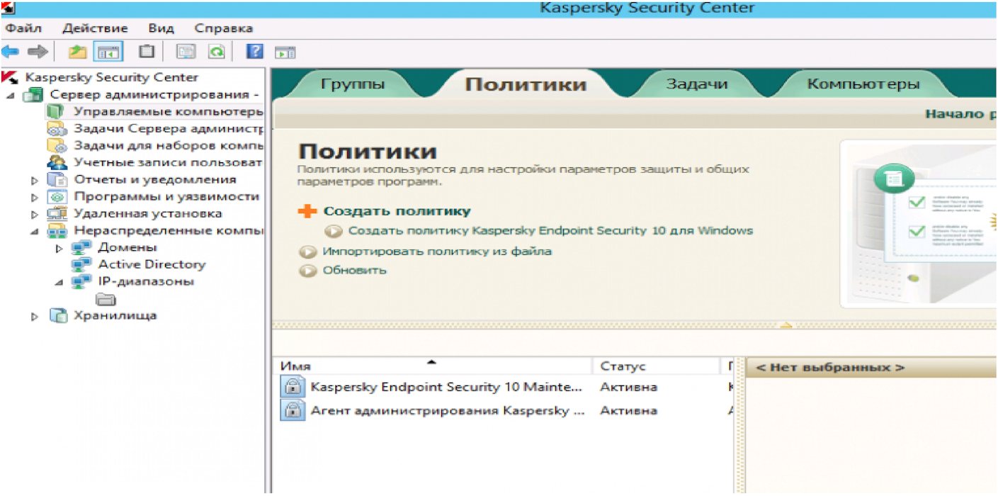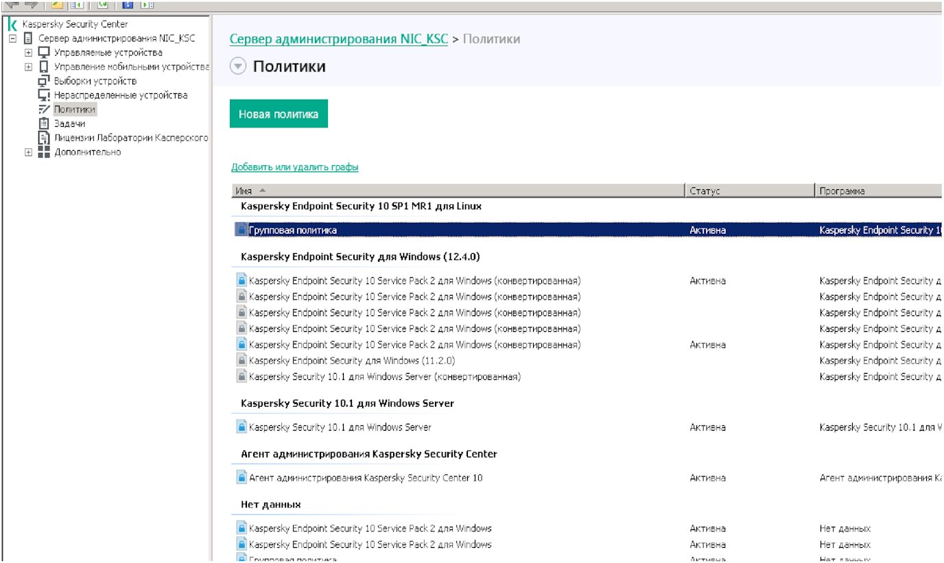 Рисунок В.1 - Раздел "Политики" на сервере администрирования