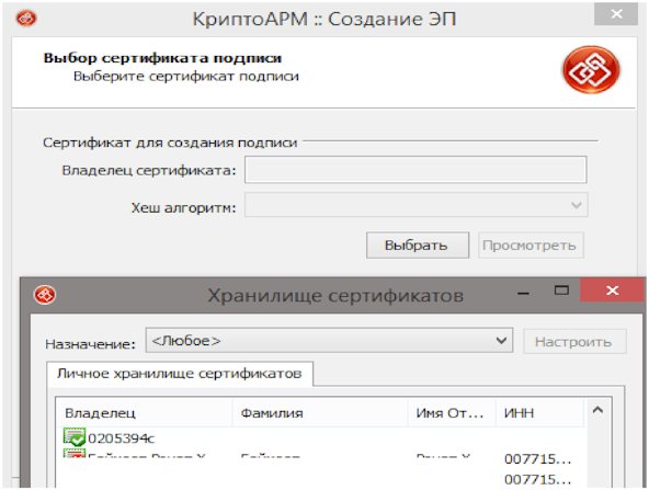 Рисунок Г.6 - Выбор сертификата электронной цифровой подписи