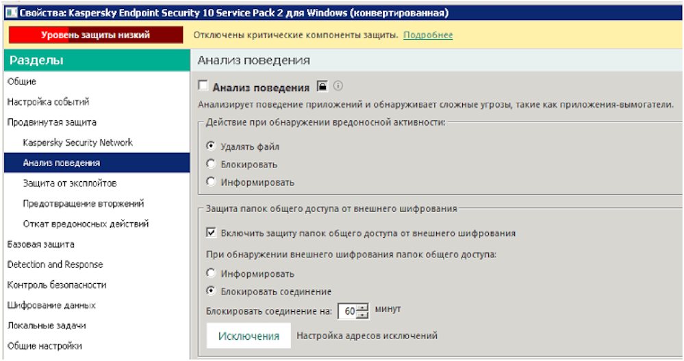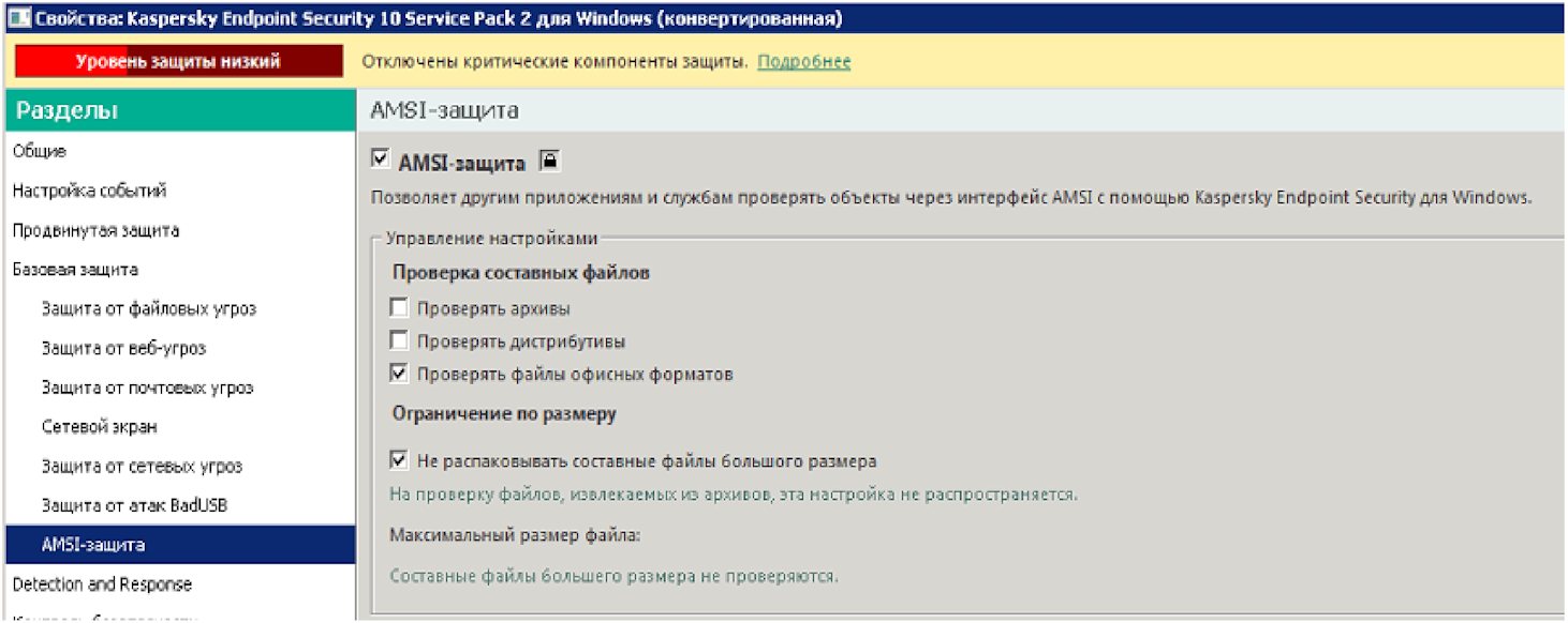 Рисунок В.7 - Установка параметров в разделе "AMSI-защиты"